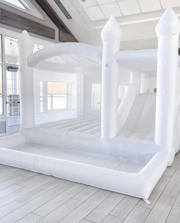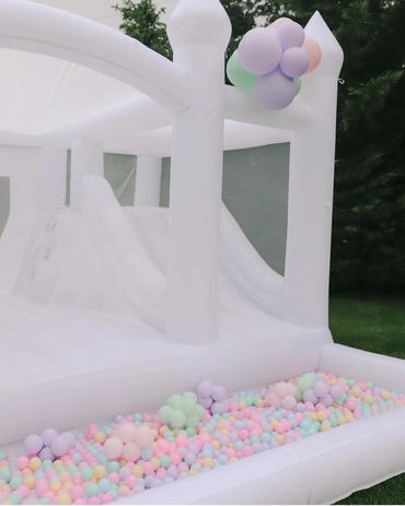 Luxurious White Bounce House Rental, Mercer County, for Kids Birthday Parties, Graduation Parties, Weddings, and Events. Give your party a modern look with our white inflatable castle. Which will be great for photo shoots, and of course lots of fun jumping and bouncing around.